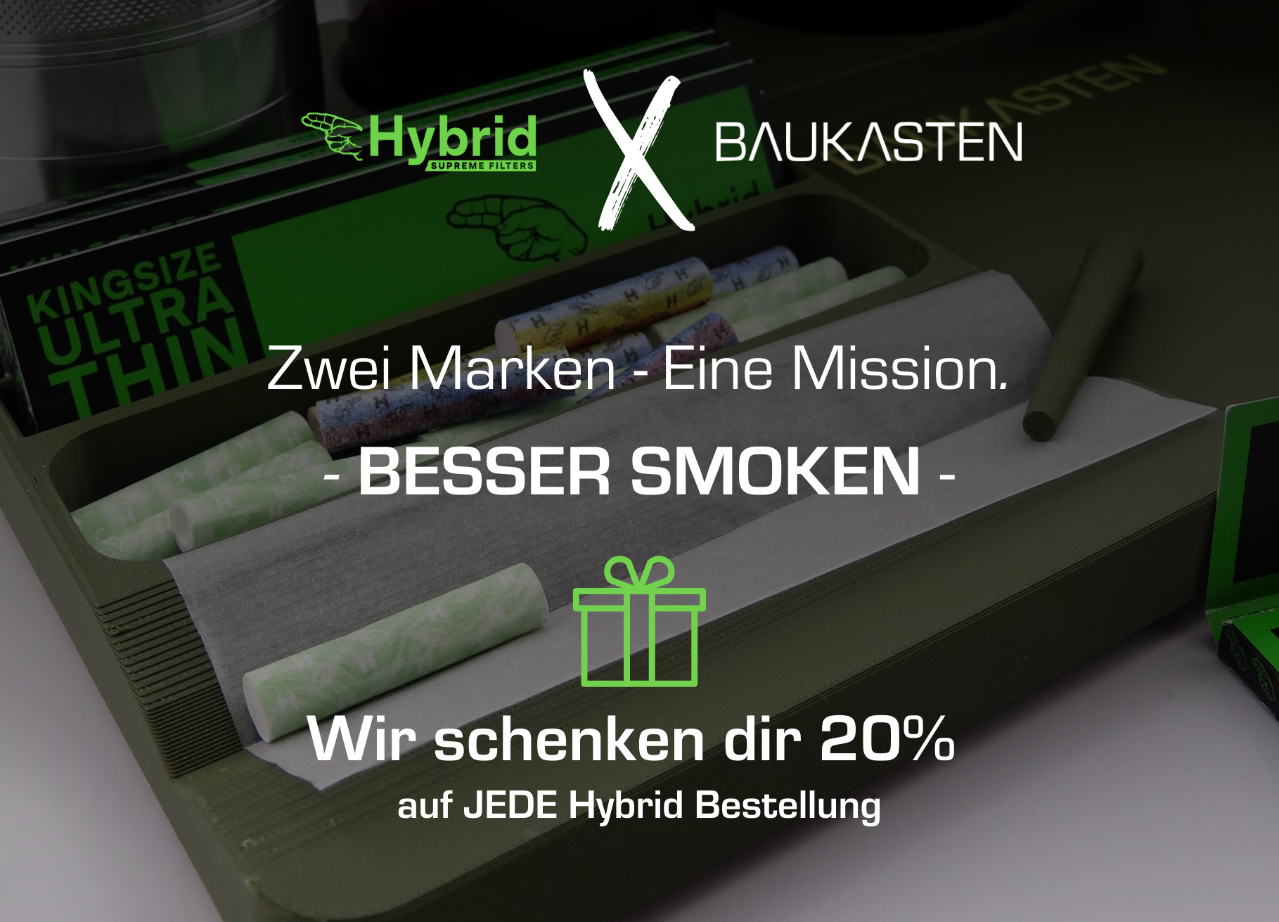 Einfach besserer Rauchgenuss mit den innovativen Filtern von Hybrid Supreme. Code: Baukasten