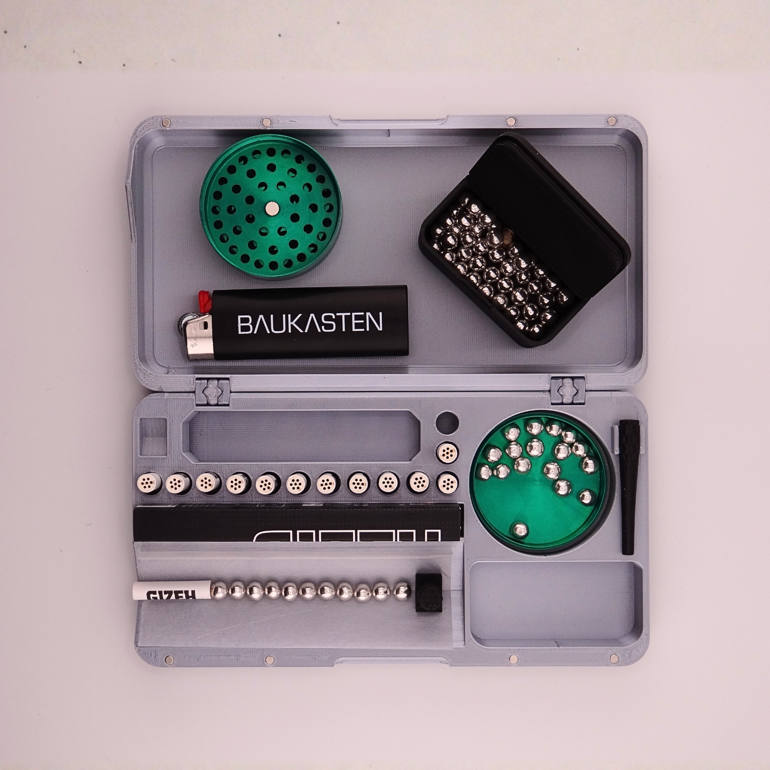 Egal ob Couch, Park oder Festival: Dein Setup bleibt sauber sortiert, griffbereit und in Sekunden startklar. Dazu kommt der passende Farb-Grinder in Rot, Gold, Blau oder Grün, damit dein Style genauso sitzt wie dein Flow.