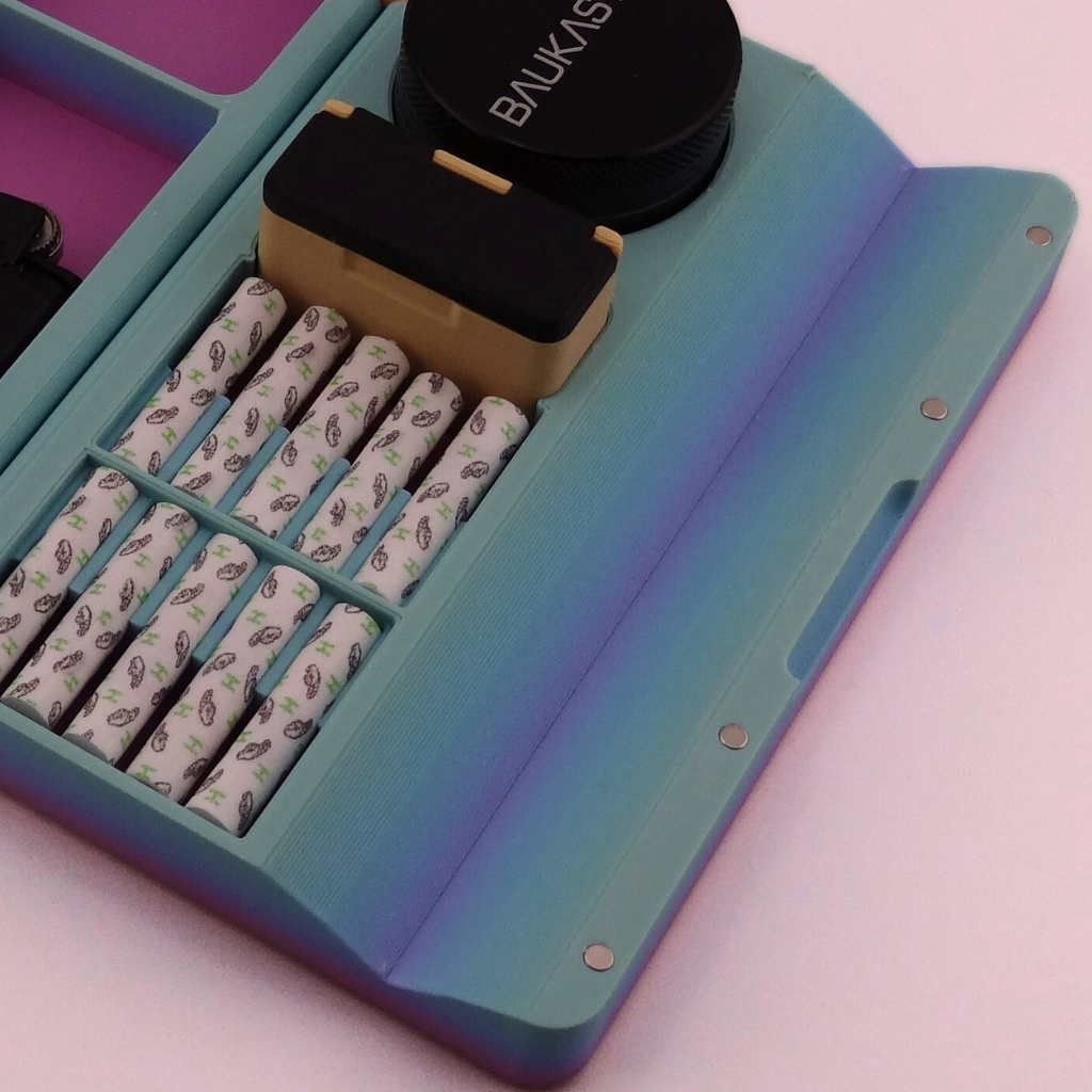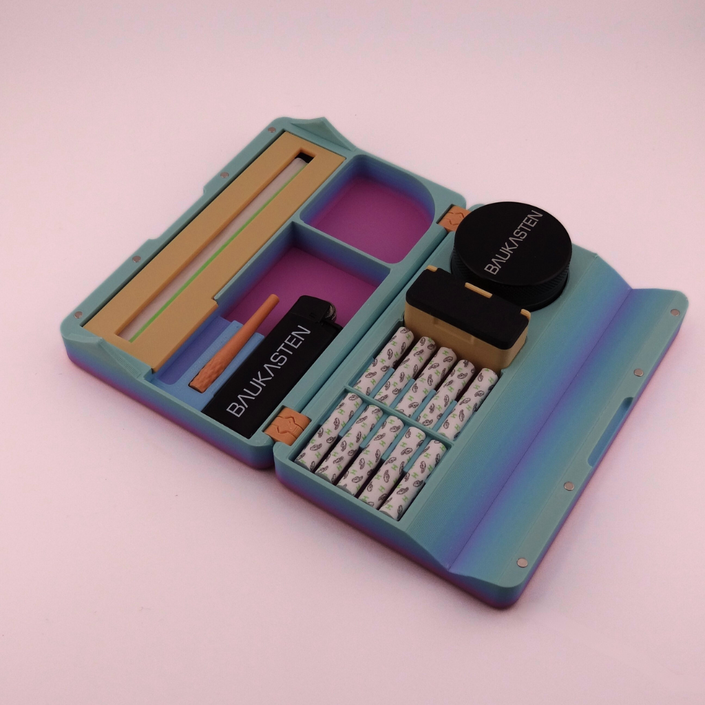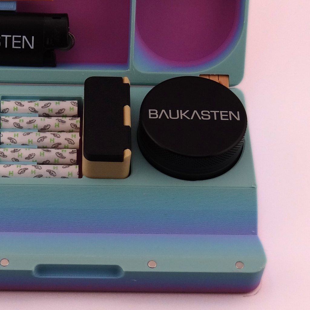 Rolling one up has never been this easy! The Baukasten is your cool and practical box & rolling tray combi for on the go or organizer at home. Holistically designed and made as simple as possible, you always have your important accessories within easy reach and safely stored at the same time.