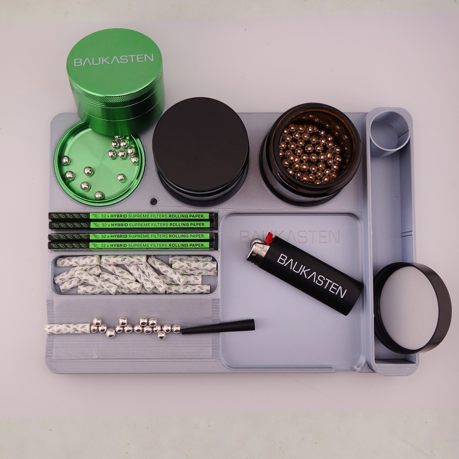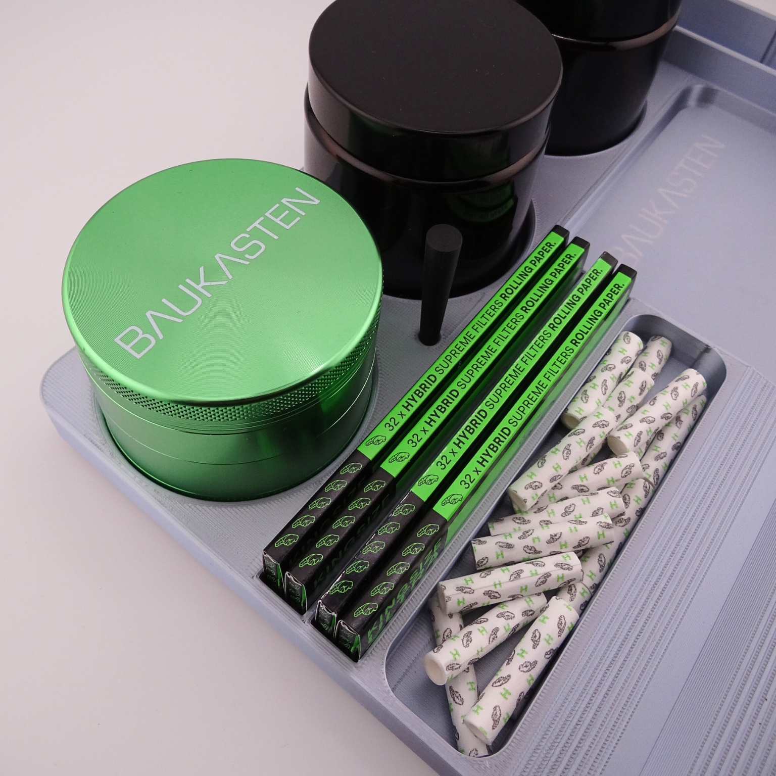 Durchdachte Verbindungen für einfaches & sauberes Bauen. Platz für nahezu jedes Zubehör, Kräuter & Tabak.